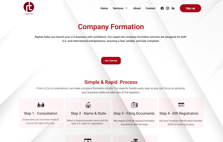 Raptax provides complete business support for U.S and international entrepreneurs-helping you start, grow, and stay compliant with ease.